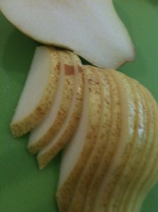 - 1 pear, thinly sliced (I used a bartlett)