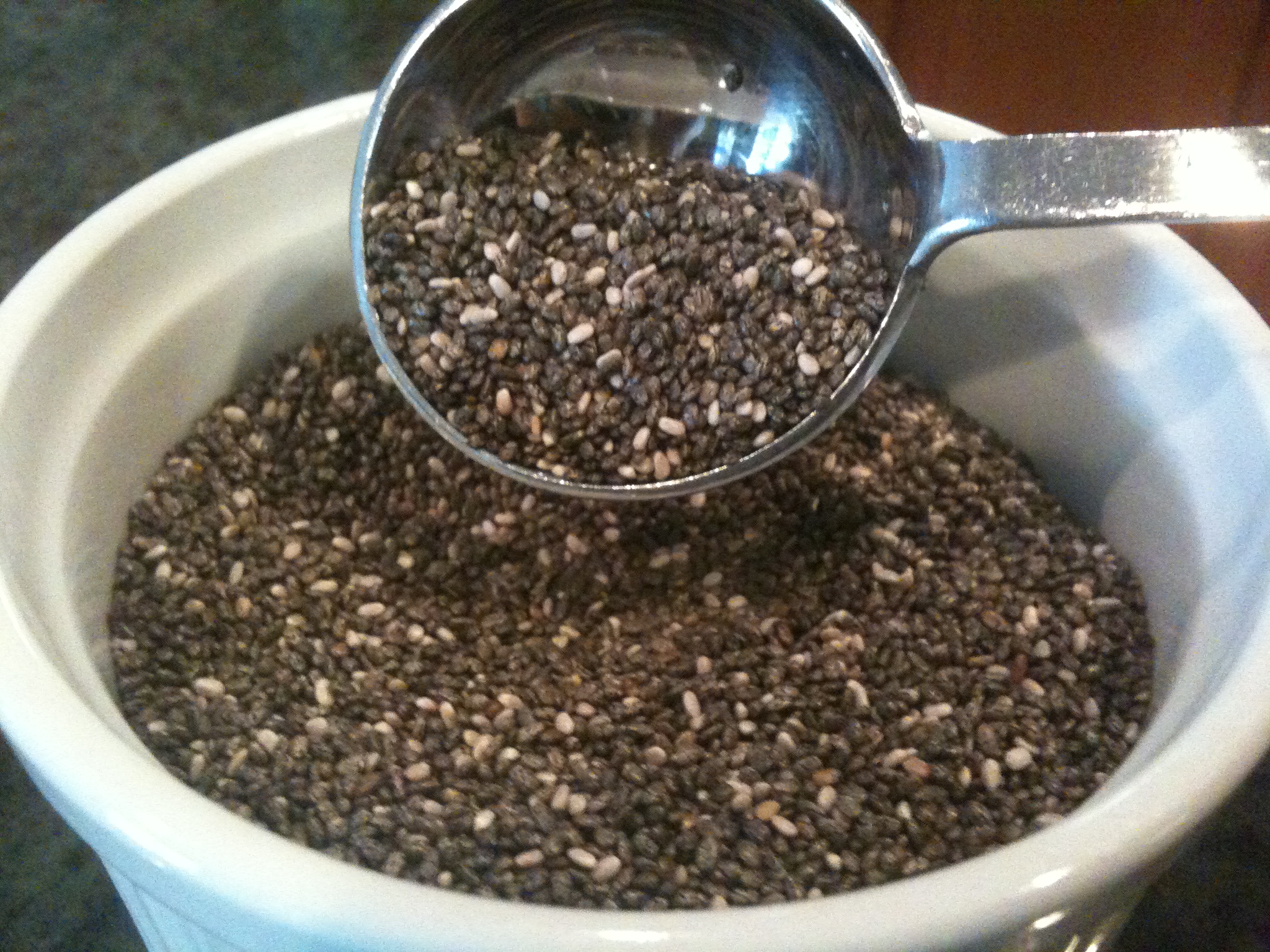 I recently discovered chia seeds and have been experimenting with them. This breakfast is my latest obsession! Chia seeds come from the plant Salvia Hispanica that originated in Mexico and South America. These tiny seeds are full of beneficial fats and are becoming a popular “super food” in America. Health gurus like Dr. Mehemet Oz and Dr. Andrew Weil have been touting the many benefits of chia seeds and their popularity is growing daily. A serving of these little wonder seeds is full of Omega-3 fatty acids, protein, and fiber. They are also very filling and sustaining which makes them great for breakfast. After trying them in smoothies and sprinkled on my oatmeal, I decided that this is the way I like them best. It’s like a breakfast pudding topped with lot’s of yummy toasted nuts, coconut, and berries. I feel like I’m having dessert for breakfast! You probably won’t find chia seeds at your local chain grocery store, but they do sell them at Whole Foods, Trader Joes, and other health food stores. You can also find them on Amazon. I bought them at San Clemente’s local health food store, Hanson’s Market.