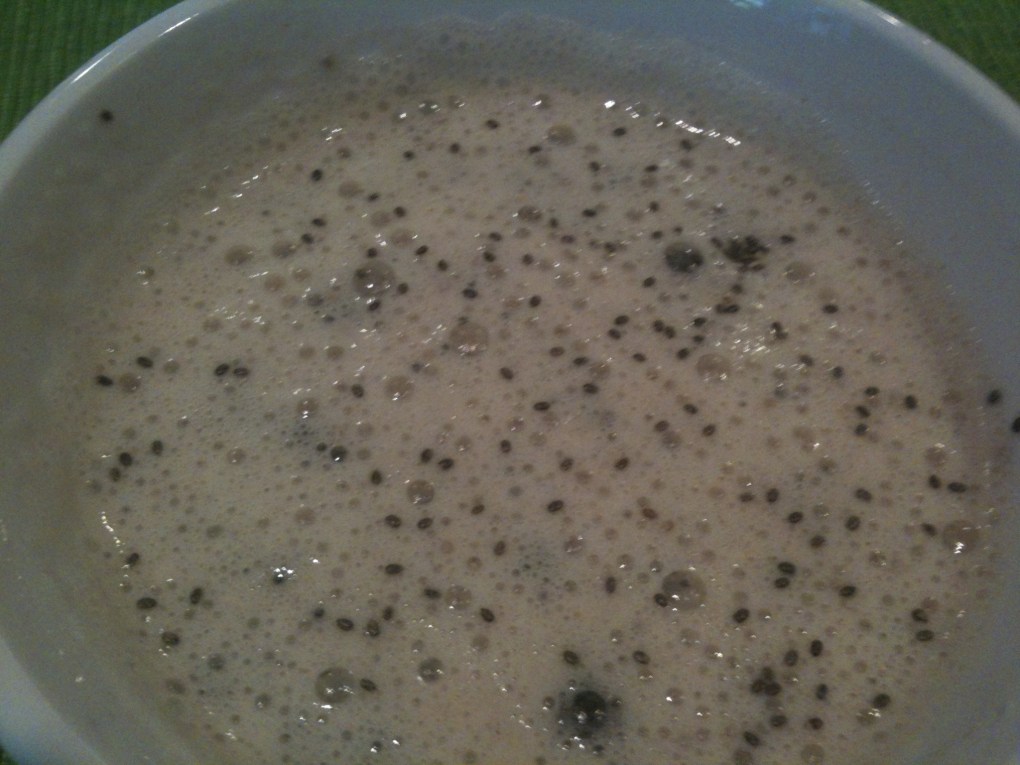 The chia seeds expand in what ever liquid you put them in and thicken to a creamy pudding-like texture with a little crunch from the seeds.