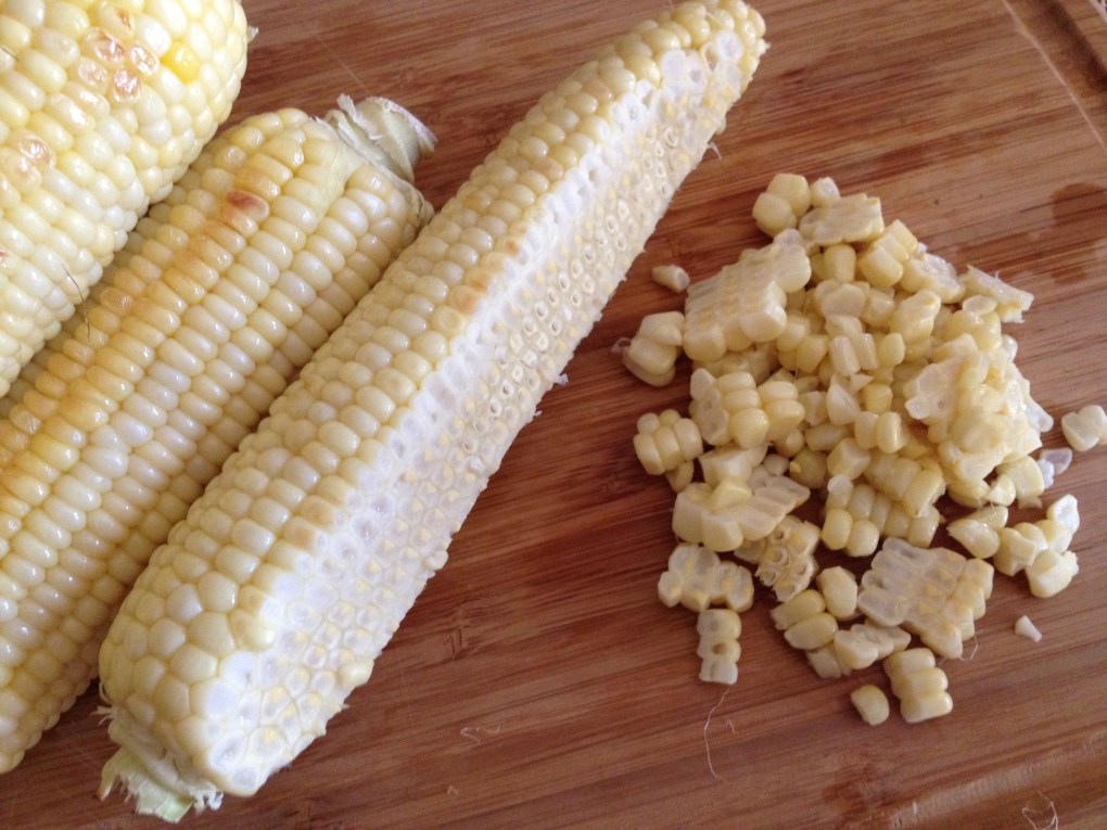 • 4 ears of cooked corn (I rub a little olive oil on mine and put them in the oven at 425 for about 10 min)