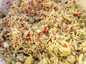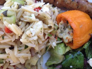 On the side we had an Orzo Salad with cucumber, roasted red pepper, green olives, artichoke hearts, and lots of fresh herbs in a lemony dressing. (see recipe below)…