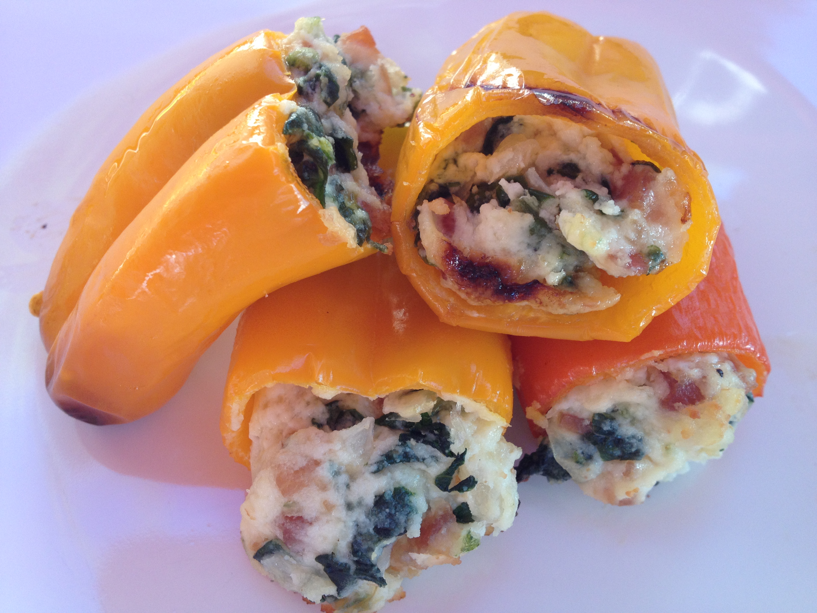 Mini Sweet Peppers Stuffed with Ricotta, Spinach, and Pancetta