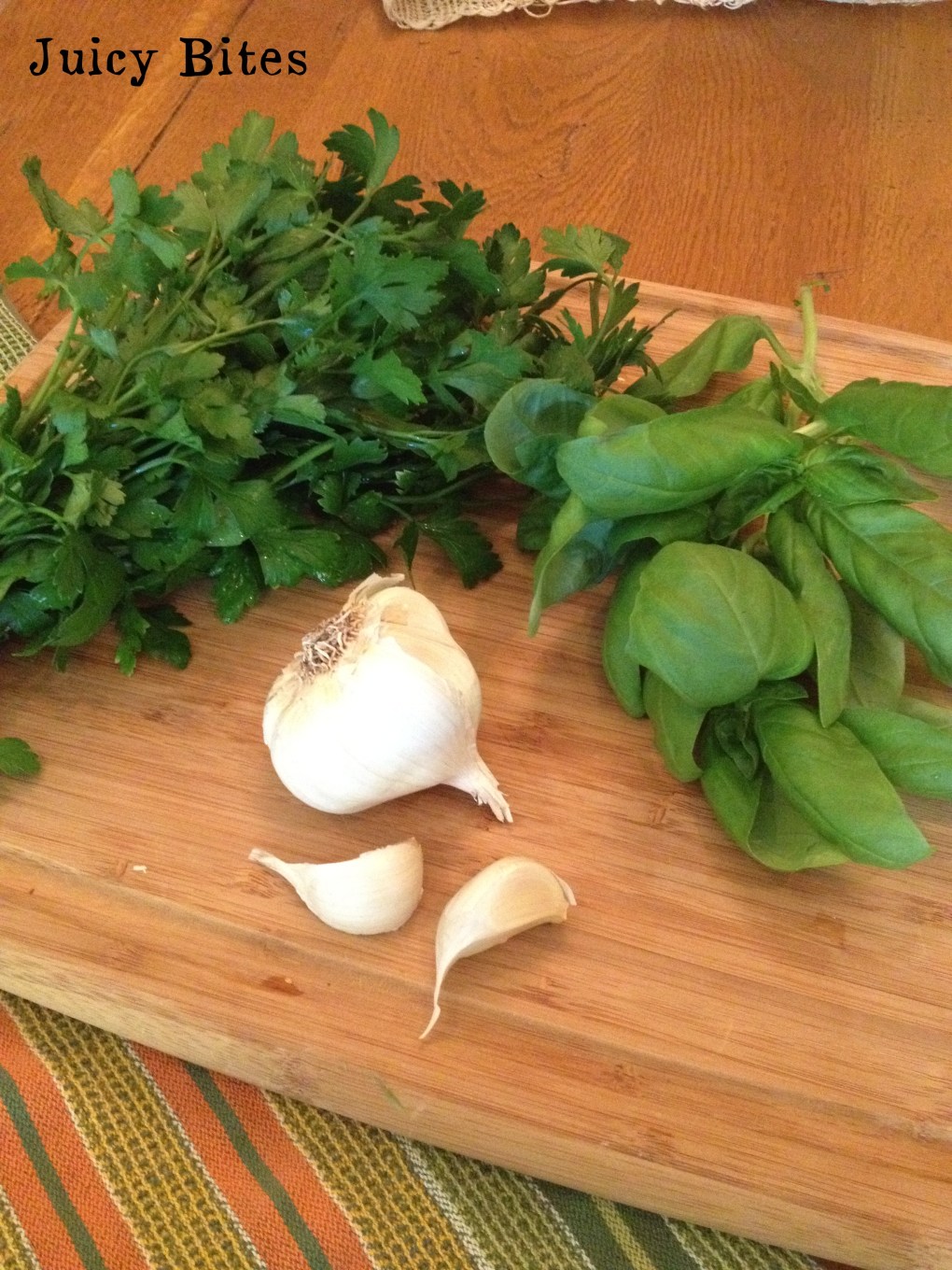 • combination of heirloom tomatoes – about 4 medium-large tomatoes mixed with some cherry tomatoes (I ended up with about 4 cups of chopped tomatoes)