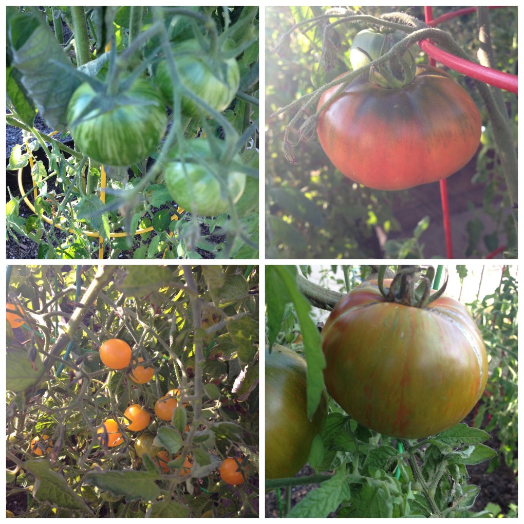 We have a nice variety and they are all so delicious. We ordered our plants from Laurel’s Heirloom Tomato Plants in Lomita, CA. She has an amazing selection of organic heirloom tomatoes and they came shipped to us carefully nested in a box in perfect condition at the beginning of Spring. She has also helped my husband with a lot of his questions on what to do about pests and other issues that can be a problem when you grow tomatoes. He found the biggest caterpillar I have ever seen munching on his leaves. We lovingly named him Phatapilla, and found him a home far away from the tomato plants. Here is a run down of what we are growing…