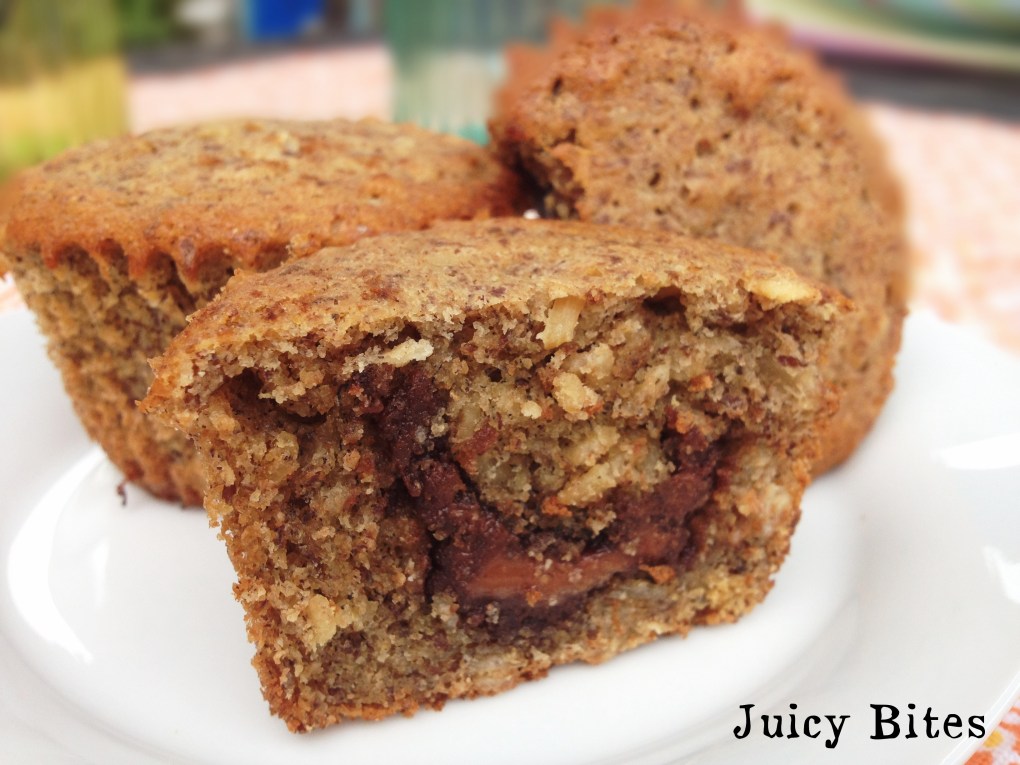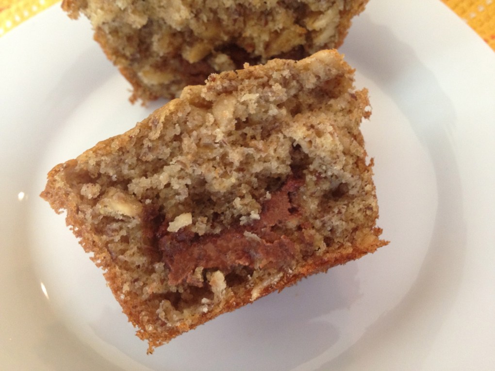 Banana Oat Muffins with a Chocolate Almond Butter Center