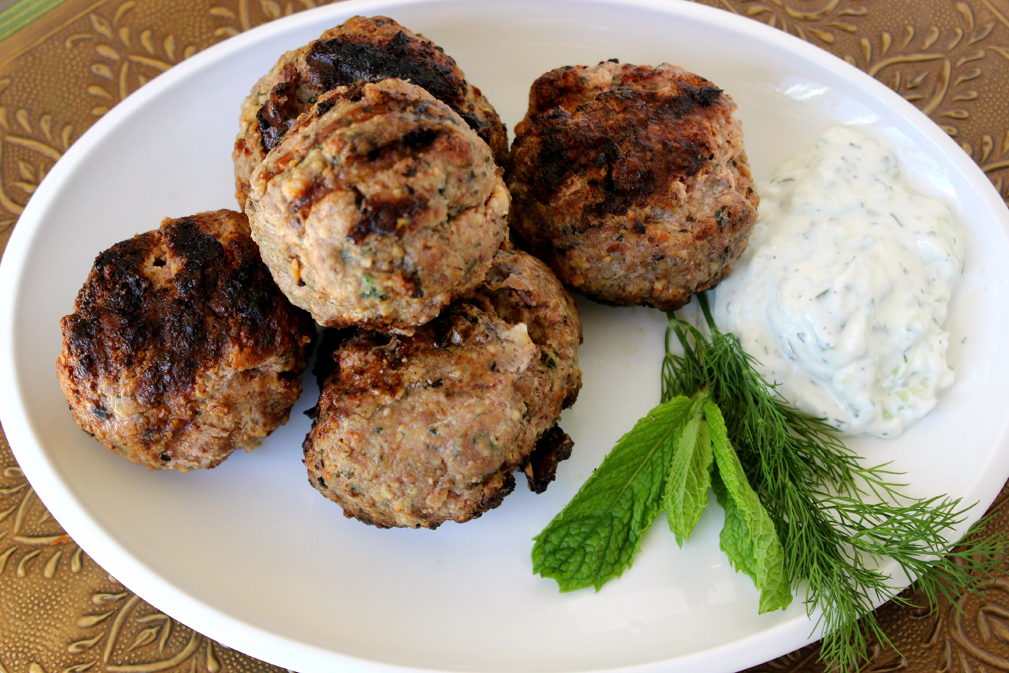 This is the perfect summer meatball! They are made with a blend of ground beef and pork and lots of fresh Mediterranean herbs for great flavor. Greek yogurt, feta & parmesan cheese and some ground pine nuts take them to the next level. We like to cook these on the grilll… first a good sear on the to lock in the juices, then finished on indirect heat. They are also great baked though! There is a lot of love that goes into these, and it shows through with every bite!
