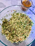fullsizeoutput_5381 March 6, 2018 3024 × 4032 Asian Meatloaf & Meatloaf Banh Mi Sandwiches Mixture of breadcrumbs, milk, and sautéed veggies all ready for meat to be added. Eggs, plus other wet ingredients are also whisked together to pour over meat before mixing.