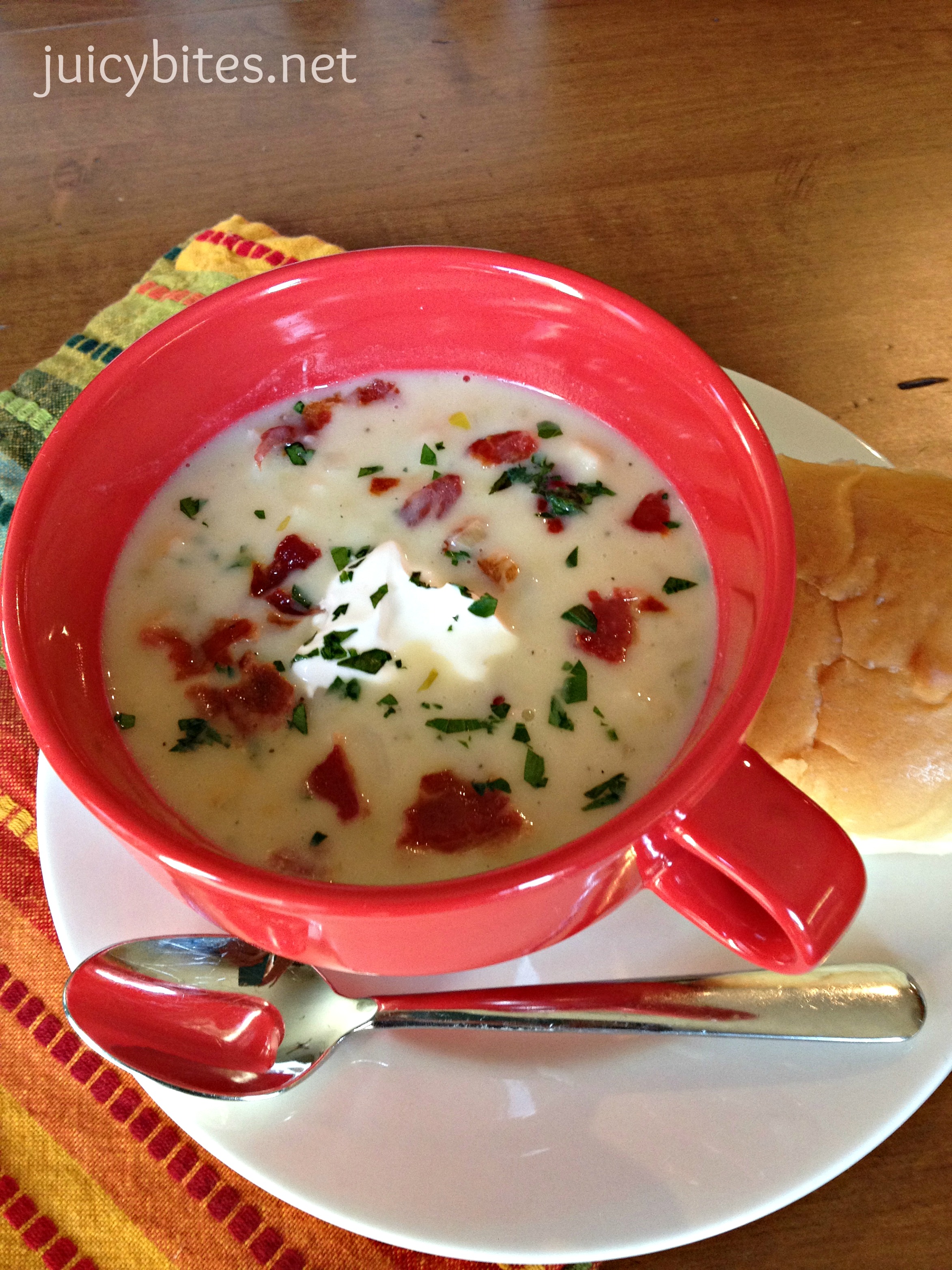 Serve garnished with crumbled bacon, sour cream, fresh chopped Italian parsley or chives.