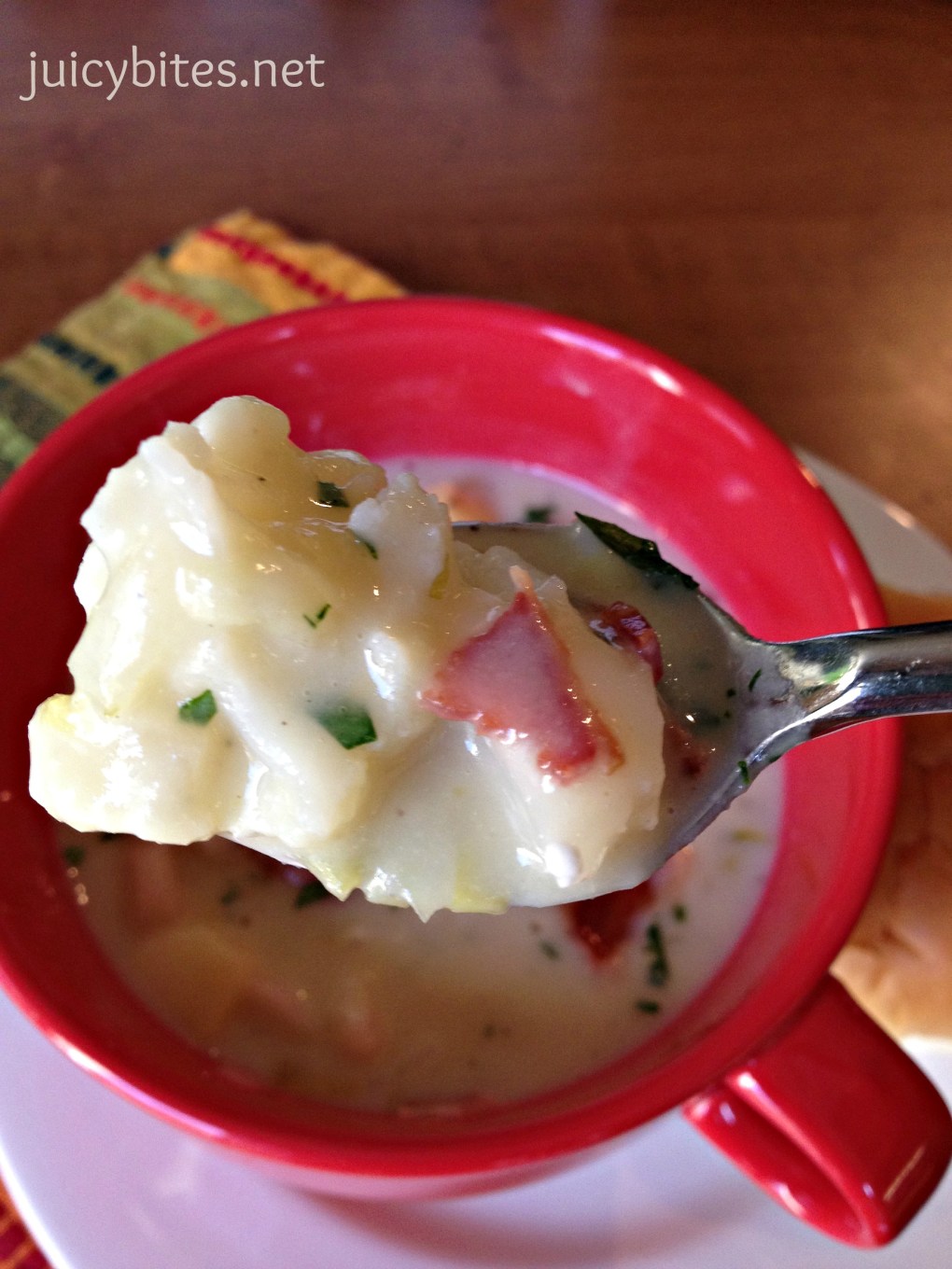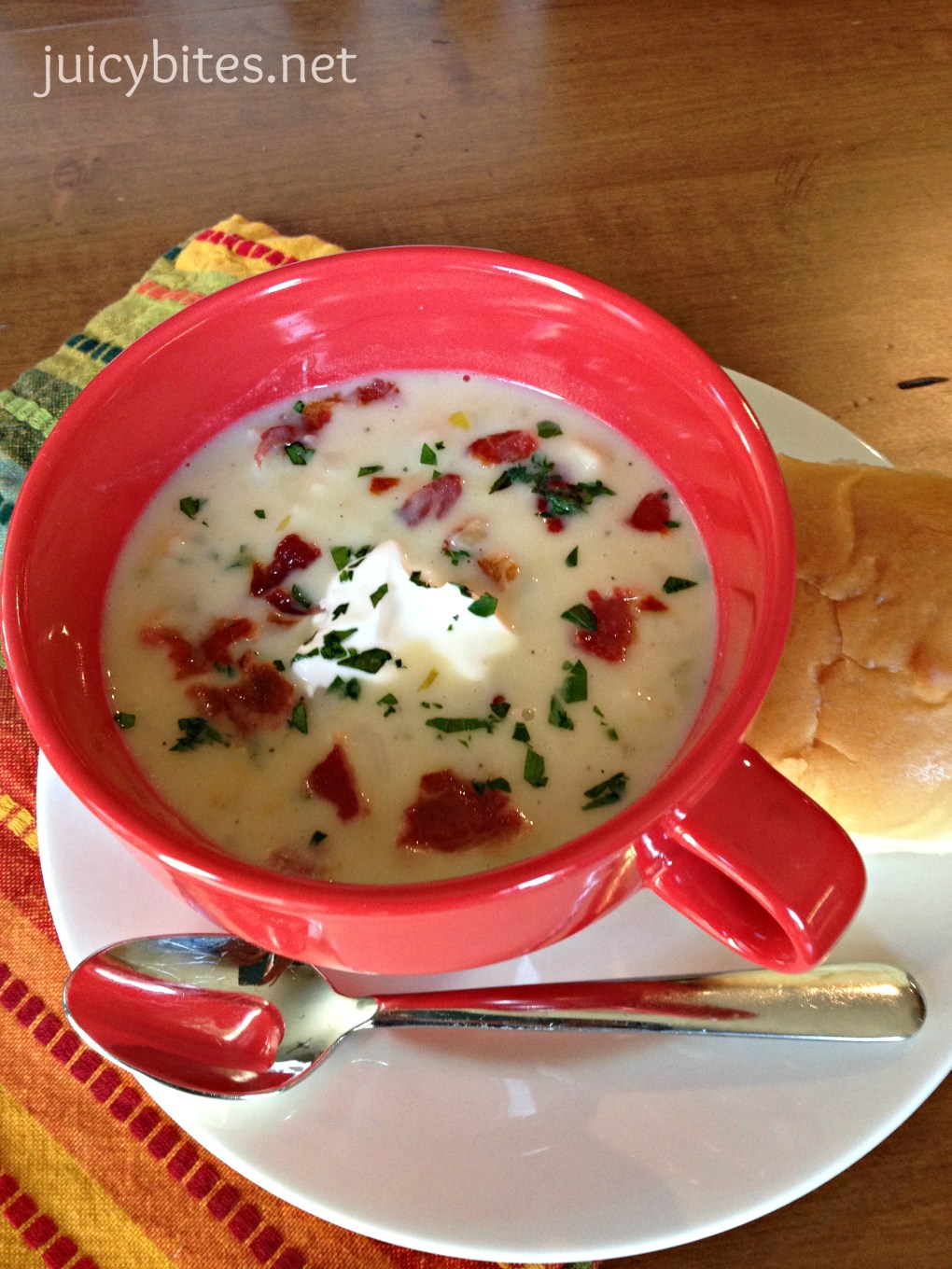 This soup screams for some good crumbled bacon on top. A little dollop of sour cream is nice too! Oh…and you MUST have some good crusty bread or rolls with it. A salad is totally optional and I find that it usually just gets in the way :).