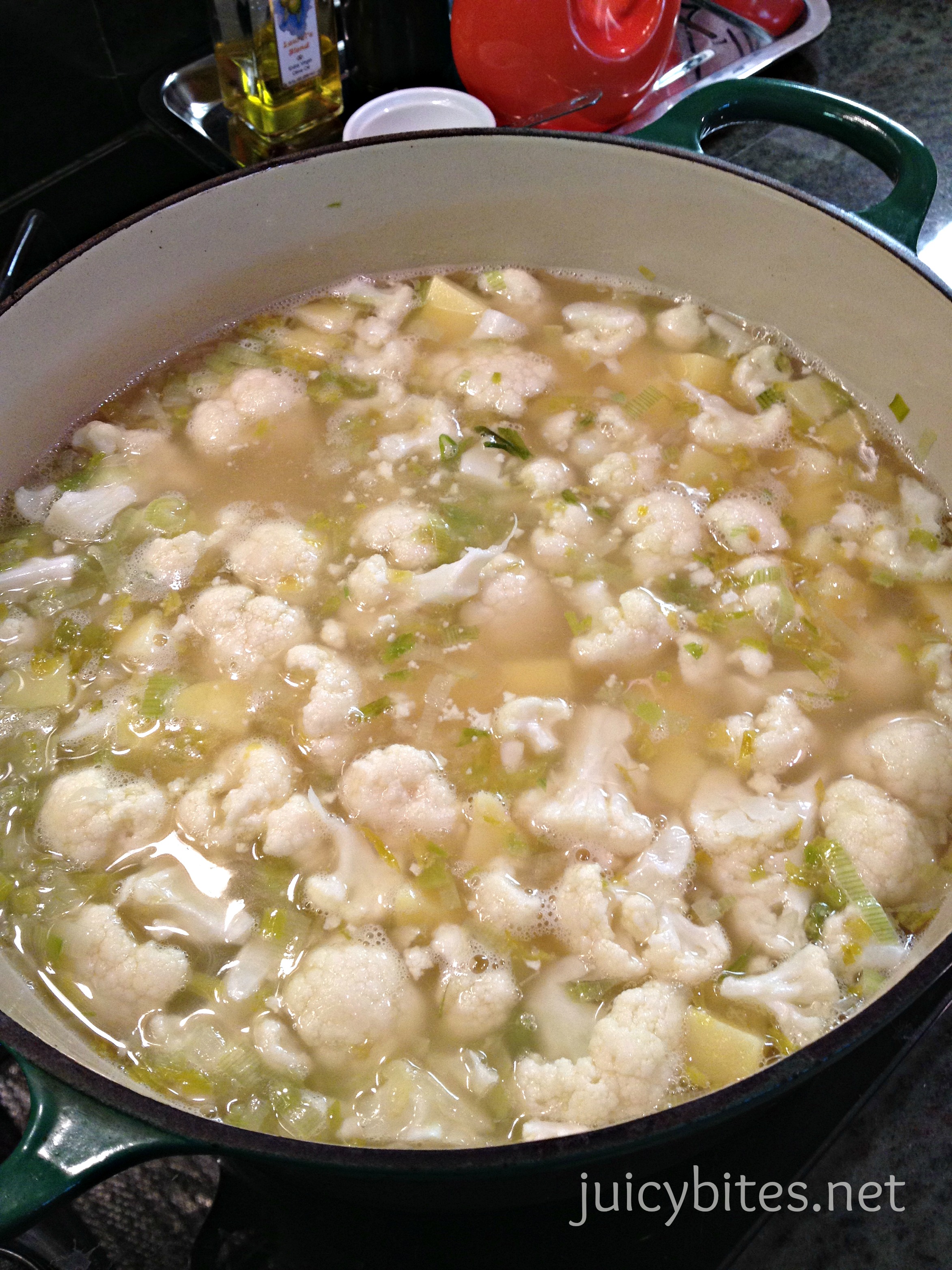 In this soup, the cauliflower works so well with the creamy yukon gold potatoes. They are a match maid in heaven.