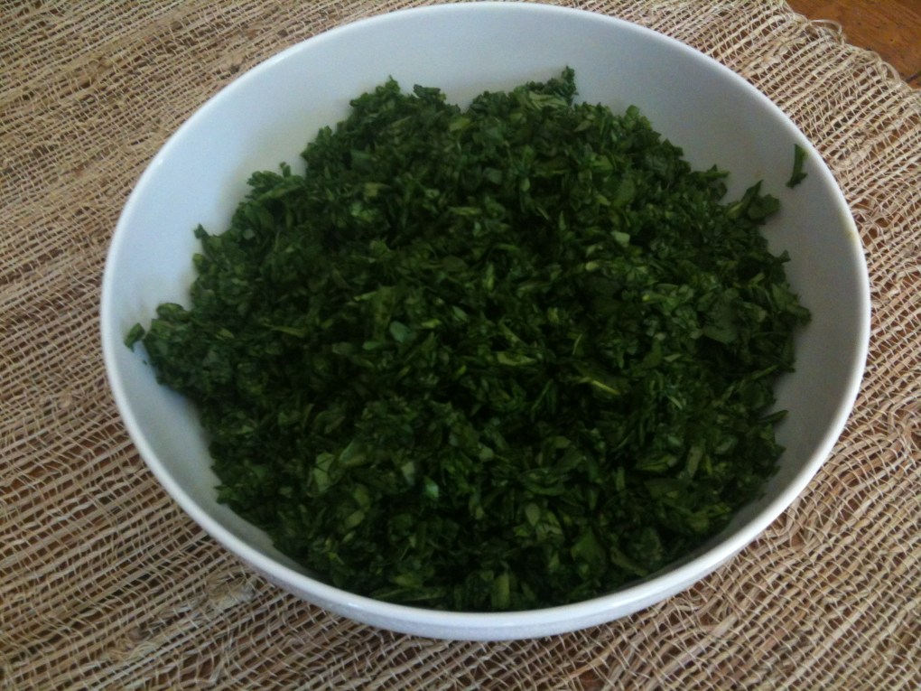 - 8 ounces (about 5 packed cups) fresh spinach, chopped in a food processor OR 10 ounce package of frozen spinach, thawed and excess water removed