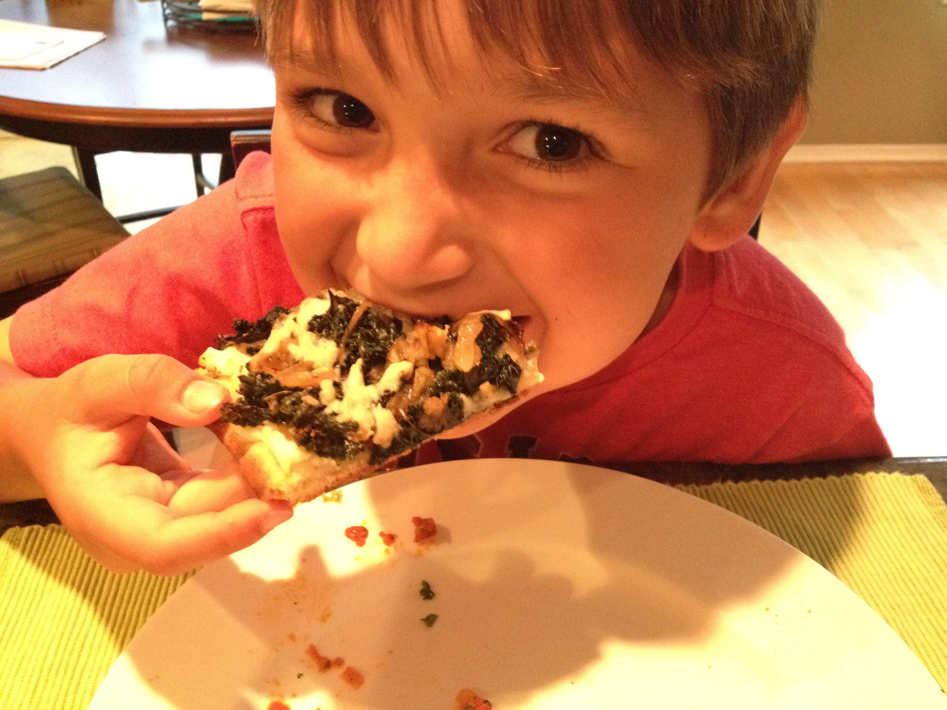 Max actually liked the Kale pizza better than the meatball pizza…and he LOVES meatballs!