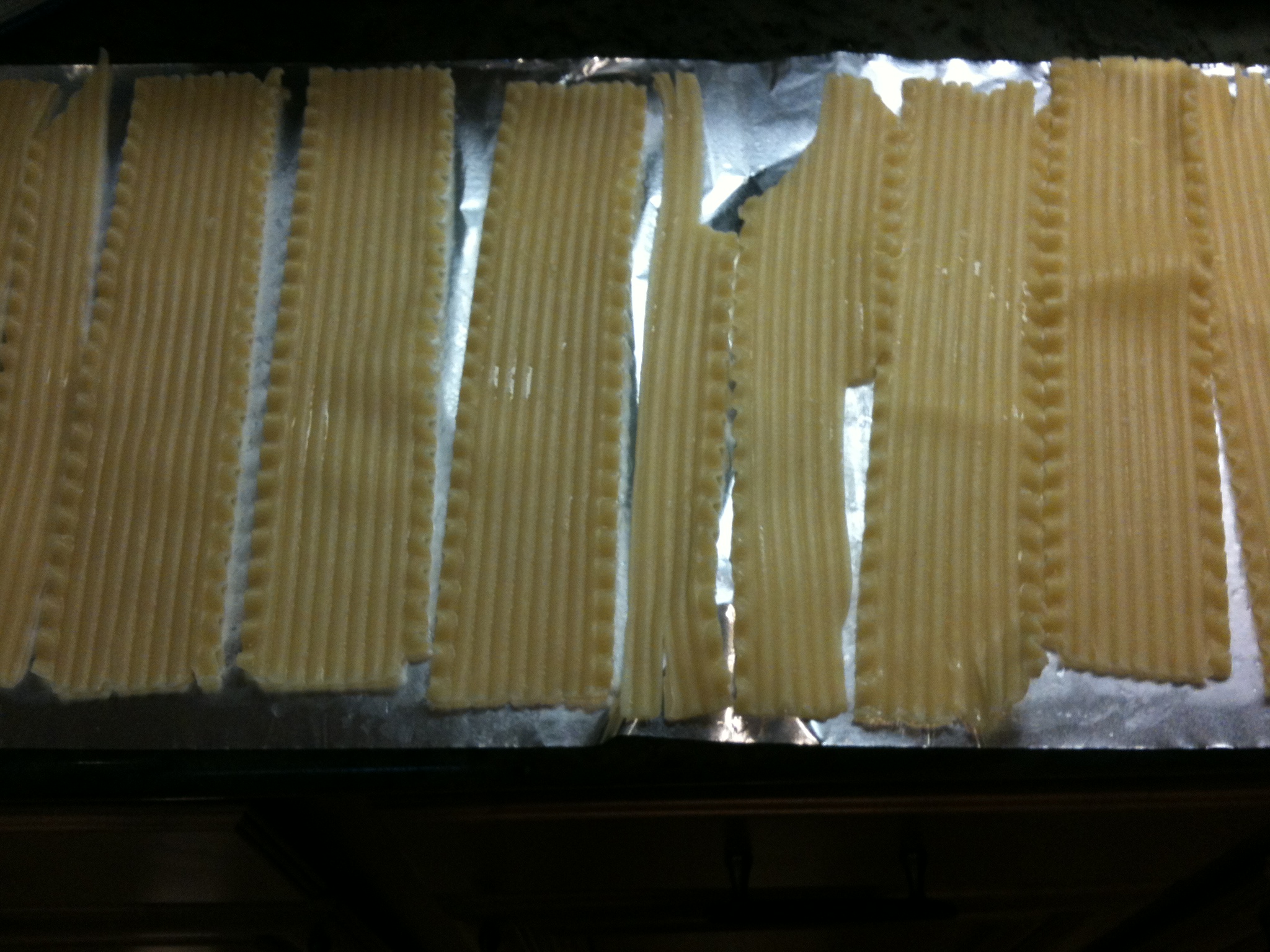- After I boil and drain my noodles, I lay them out on foil that I have sprayed with non-stick spray so they won’t stick.
